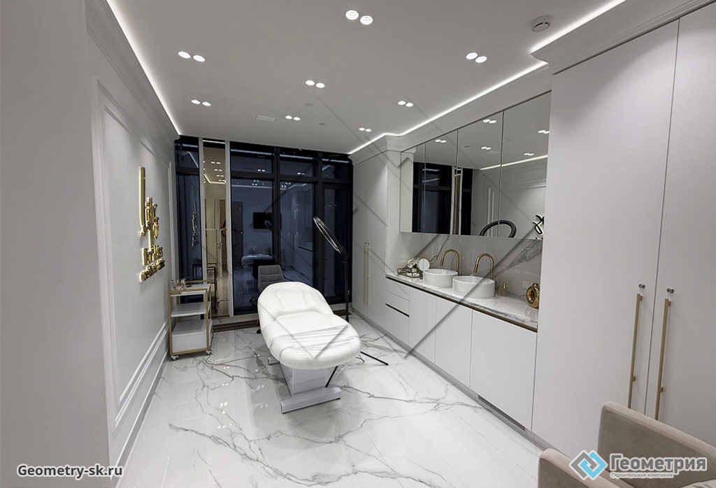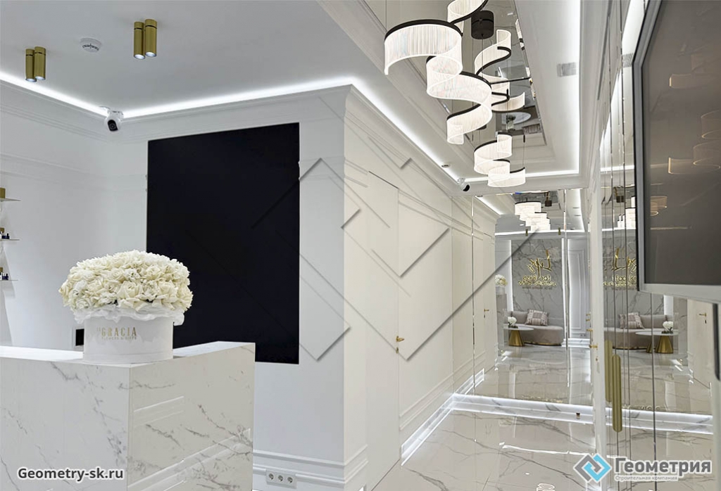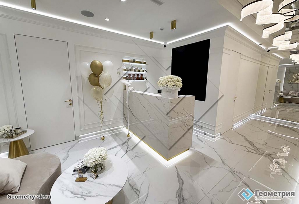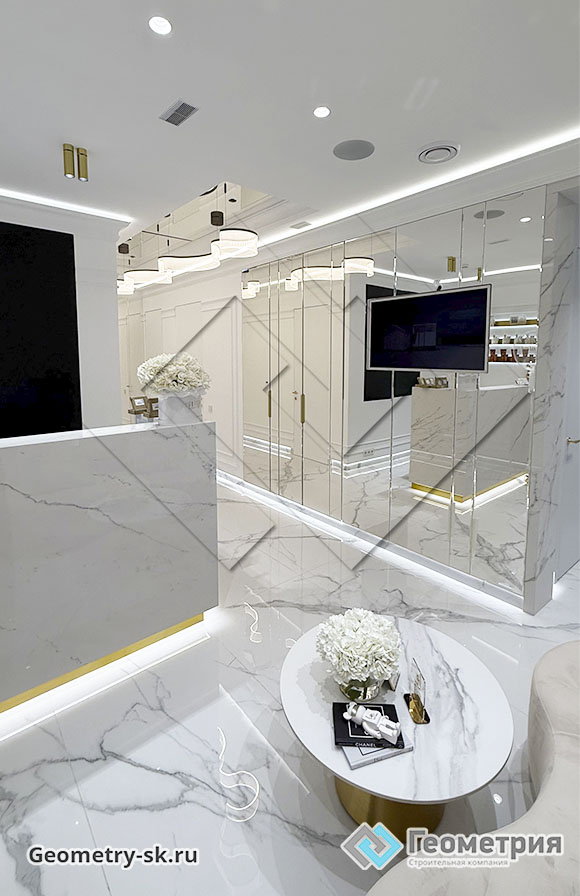 Заказчиком была поставлена задача выполнить ремонт помещения под ключ в соответствии с дизайн-проектом салона красоты. Необходимо было разработать инженерные проекты на инженерные сети. Выполнить полный демонтаж отделки от предыдущего арендатора, локально изменить планировочное решение. Также выполнить ремонтаж всех инженерных сетей, черновую и чистовую отделку.